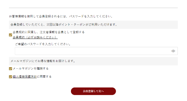 パスワードを登録することで、入力した情報での会員登録が可能です。