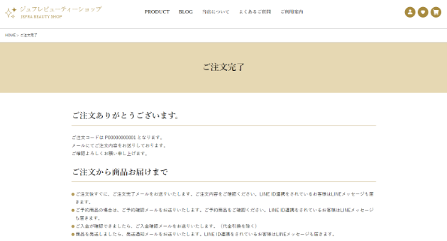 ご注文完了画面では、ご注文コードがご確認いただけます。